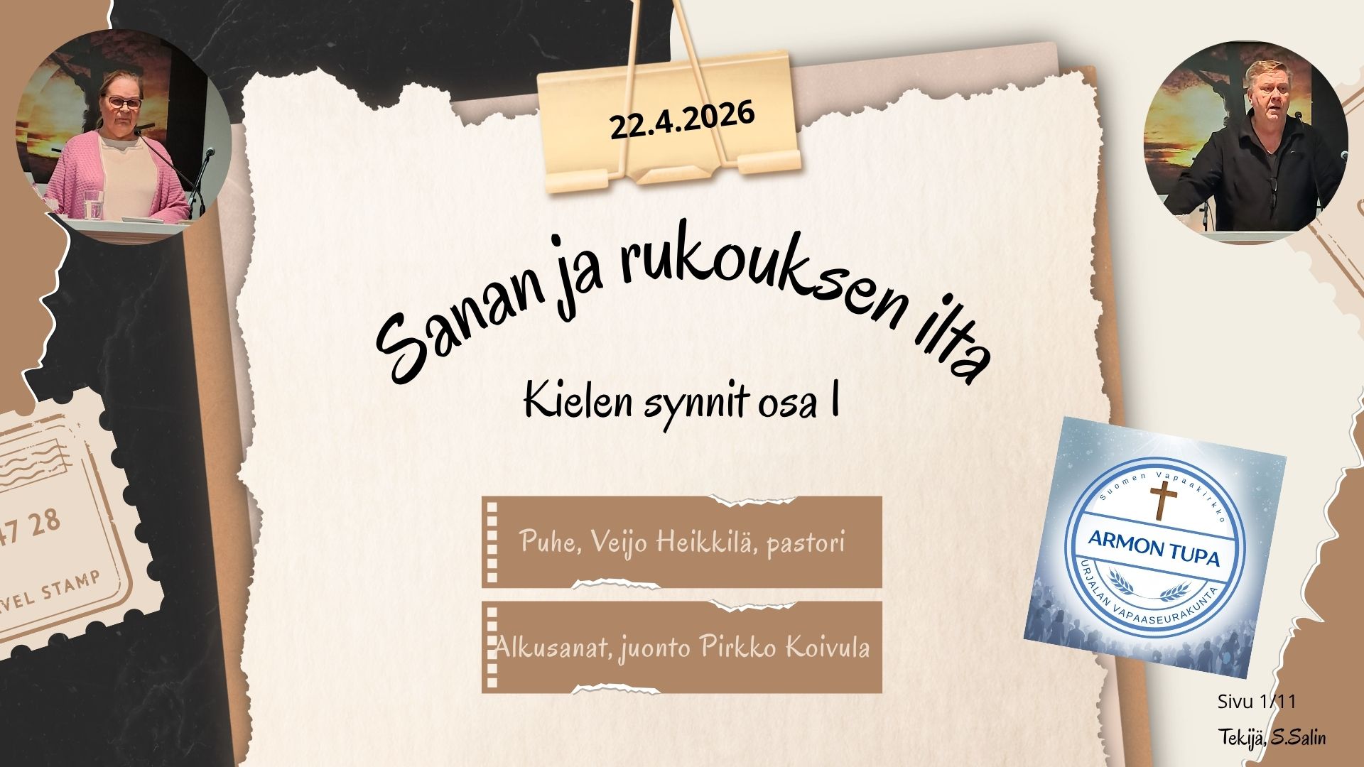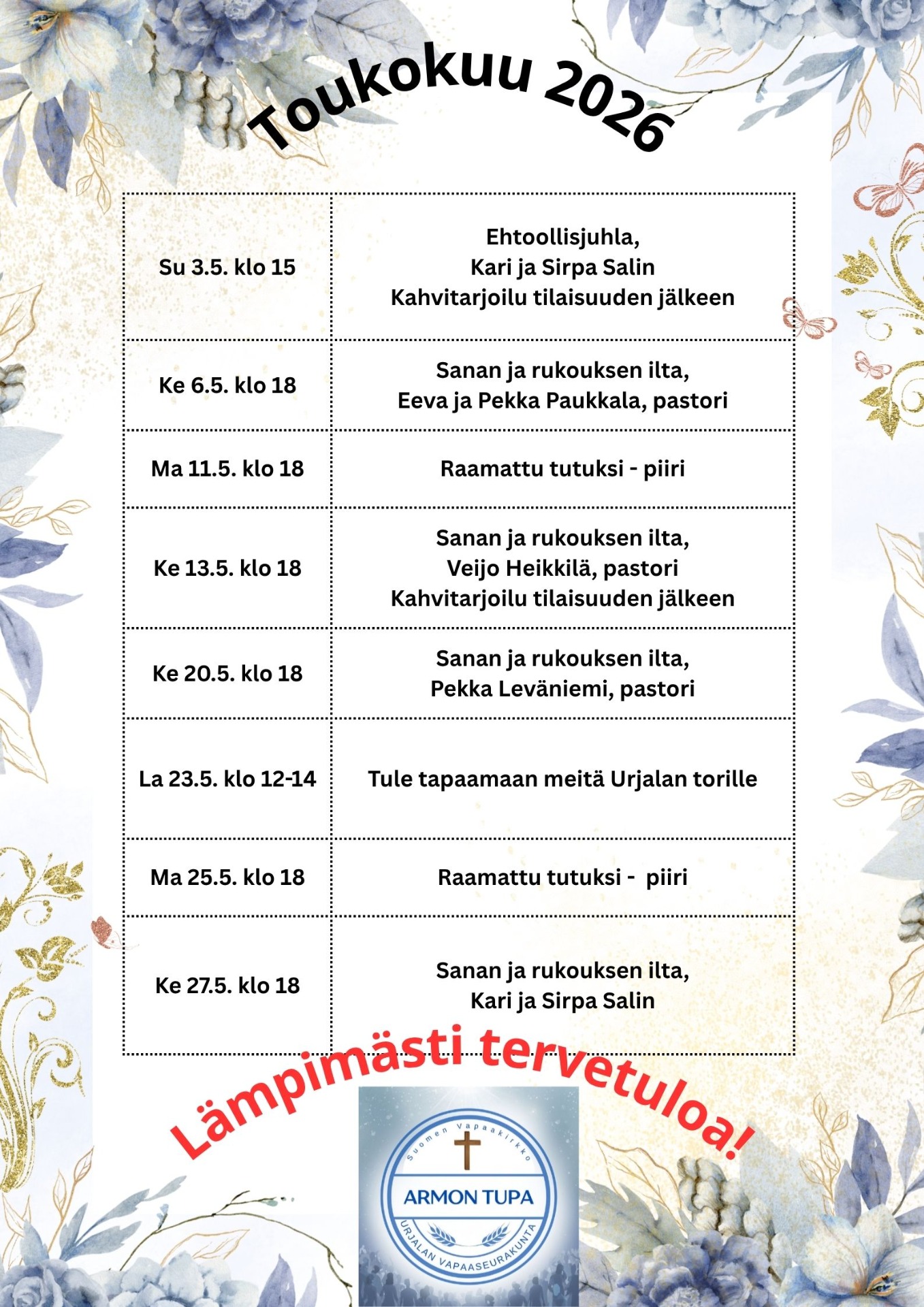 Kaikki ovat tervetulleita mukaan sanan ja rukouksen iltaan sekä sen jälkeen järjestettävään kahvitarjoiluun.