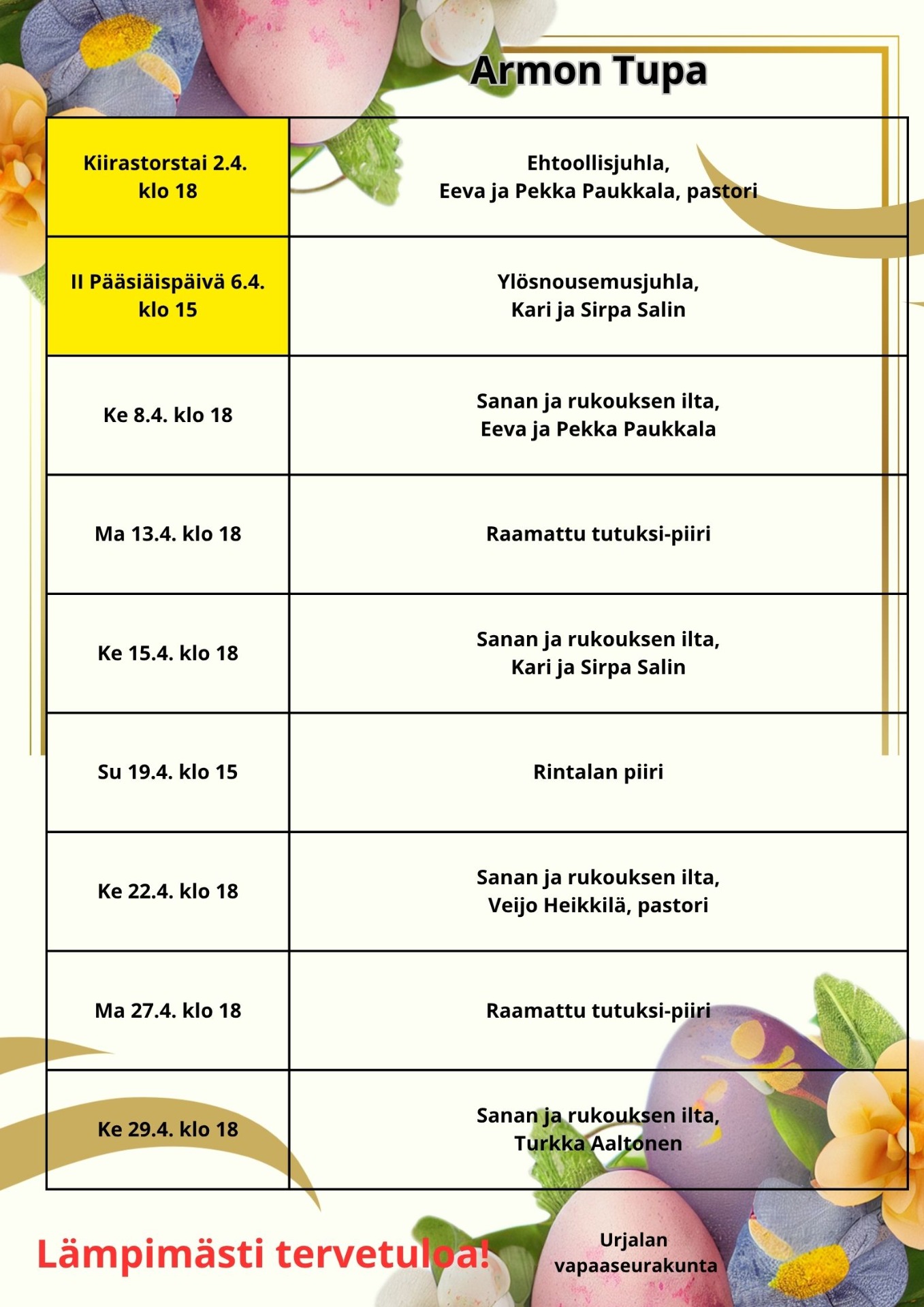 Lämpimästi tervetuloa mukaan etsimään lepoa, rohkaisua ja Jumalan läsnäoloa arjen keskelle.
